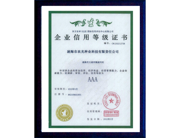 | 凌海市農(nóng)光種業(yè)科技有限責任公司是由遼寧省種子管理局和凌海市人民政府批準,集科研、生產(chǎn)、試驗示范、經(jīng)營為一體的種子企業(yè)。 公司擁有種子繁育基地3萬畝,年產(chǎn)種子1200萬公斤左右。自成立以來在農(nóng)業(yè)部及遼寧省歷次花期檢驗中,所生產(chǎn)的種子質(zhì)量合格,擁有良好的儲備、晾曬和機械加工設備,為了提高種子質(zhì)量,2015年新購置種子脫粒機、清選機、烘干機以及電腦包裝機等整套加工設備,擁有經(jīng)省技術監(jiān)督局認證的“標準化檢驗室”,投資20萬元購買人工氣候室、土壤測試儀、低溫低濕冷藏箱等各種檢驗設備。公司重視種子科研工作,現(xiàn)有科研育種實驗基地100畝,科研上以自主研發(fā)為主,同時與多家科研單位合作育種,每年繁、育、測交材料2000多份,現(xiàn)以推出五個組合參加錦州區(qū)域試種,其中“農(nóng)光3號、農(nóng)光4號”在錦州地區(qū)試驗中產(chǎn)量居首位。2006年公司買斷的連玉16玉米品種已通過5個省市的審認定,具有適應性廣、抗逆性強、產(chǎn)量高的特點,曾榮獲大連科技進步一等獎,深受廣大農(nóng)戶的歡迎。2008年公司新選育的農(nóng)光4000玉米品種在市種子管理站新品種大區(qū)試驗項目中。2012年公司買斷錦玉118品種權(quán),新品種的推廣與應用為公司的發(fā)展提供了充足的動力...... |